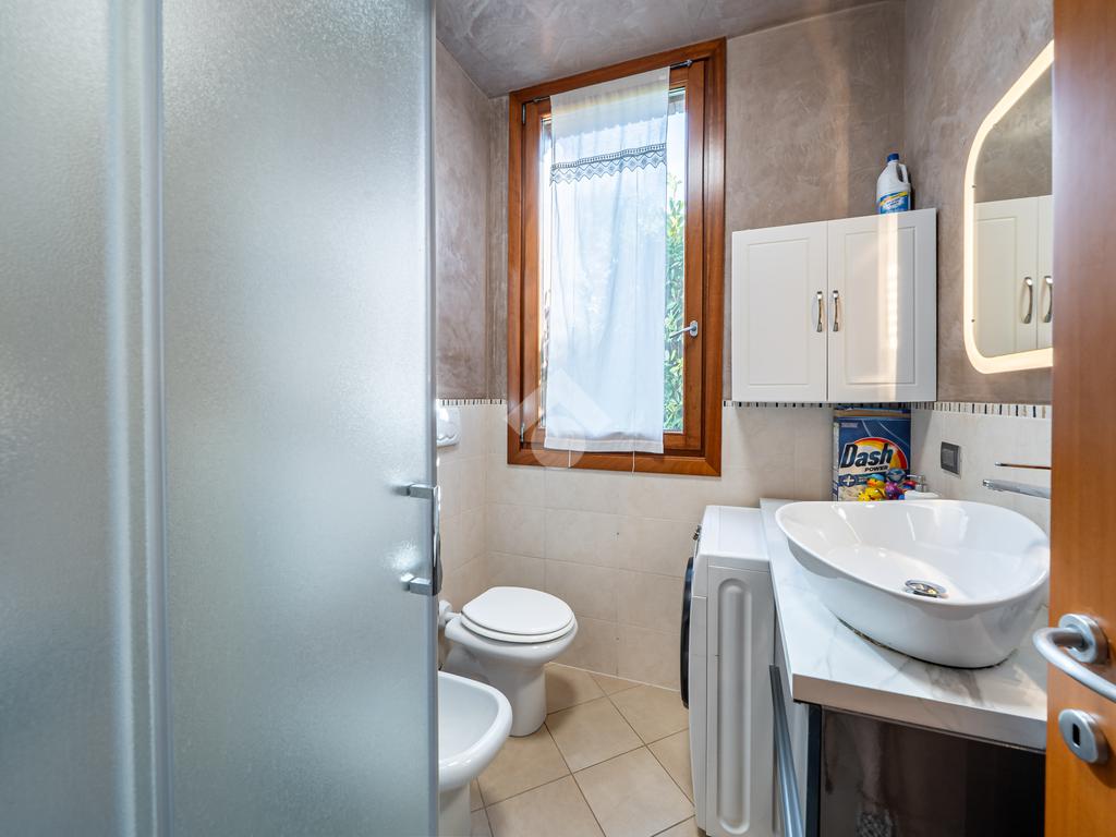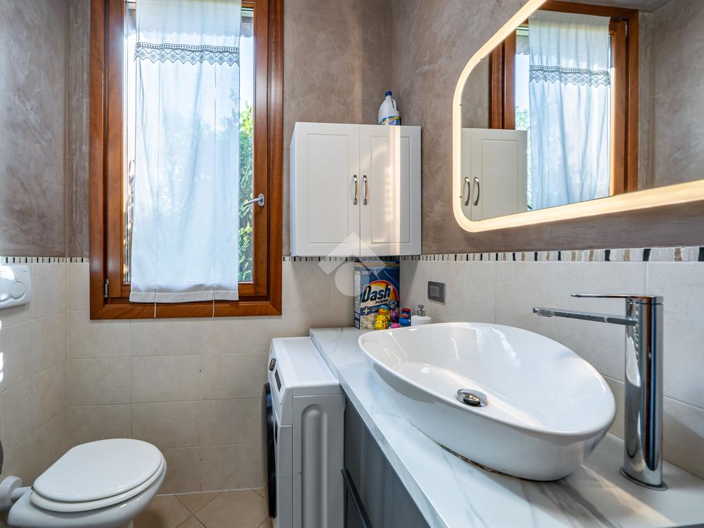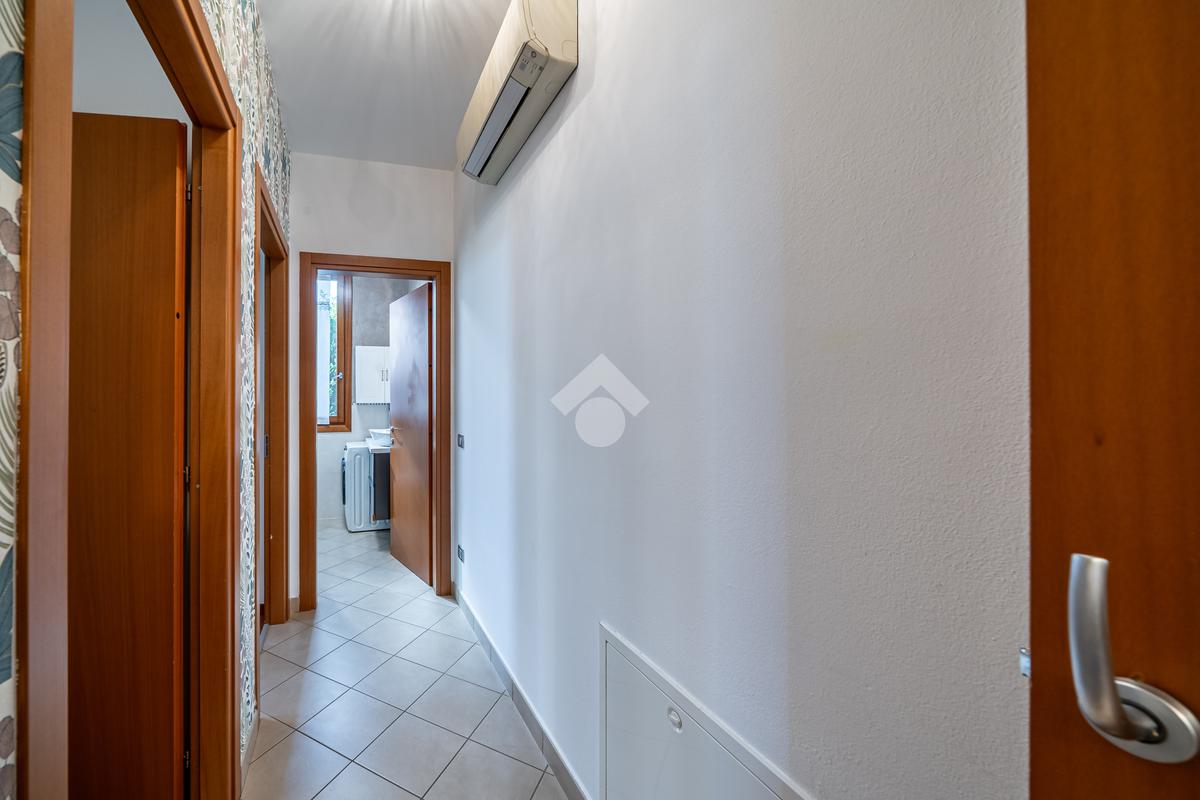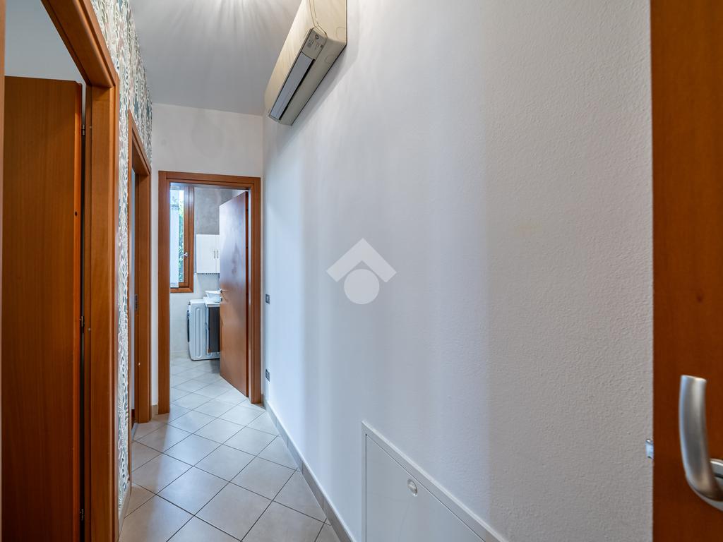 L'appartamento è dotato di aria condizionata, video sorveglianza, impianto d'irrigazione, riscaldamento a pavimento, infissi in legno con doppio vetro e zanzariere, porta blindata, ingresso indipendente dal giardino.