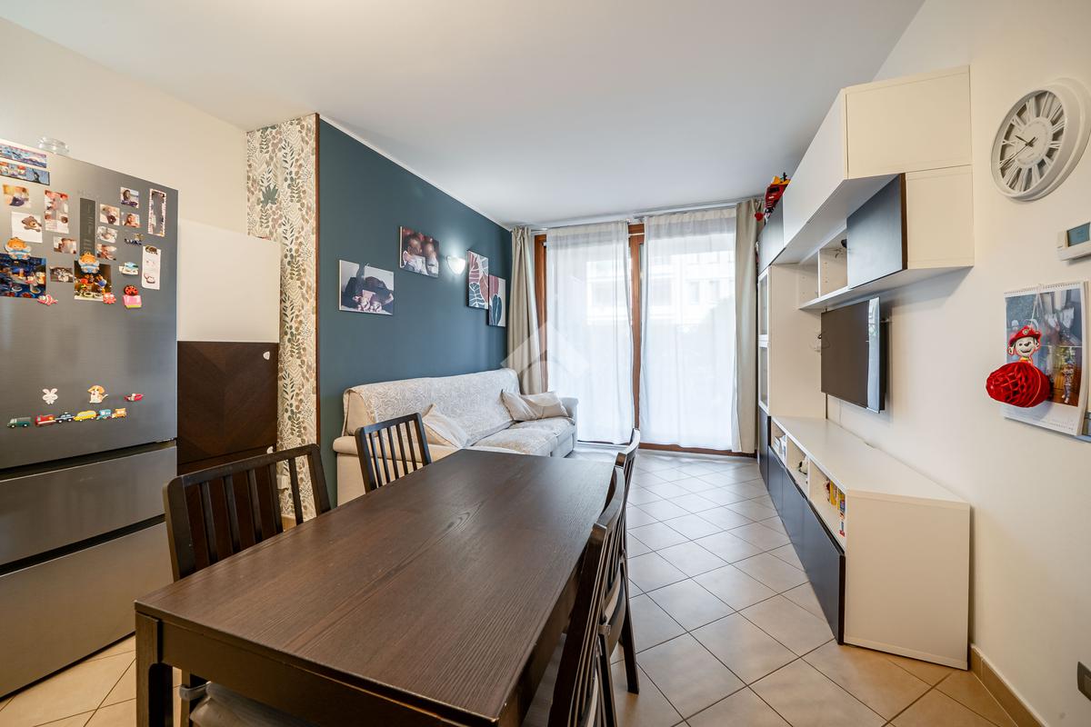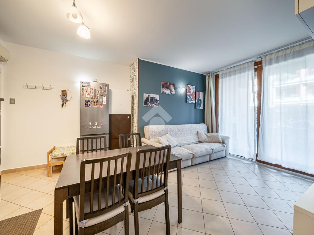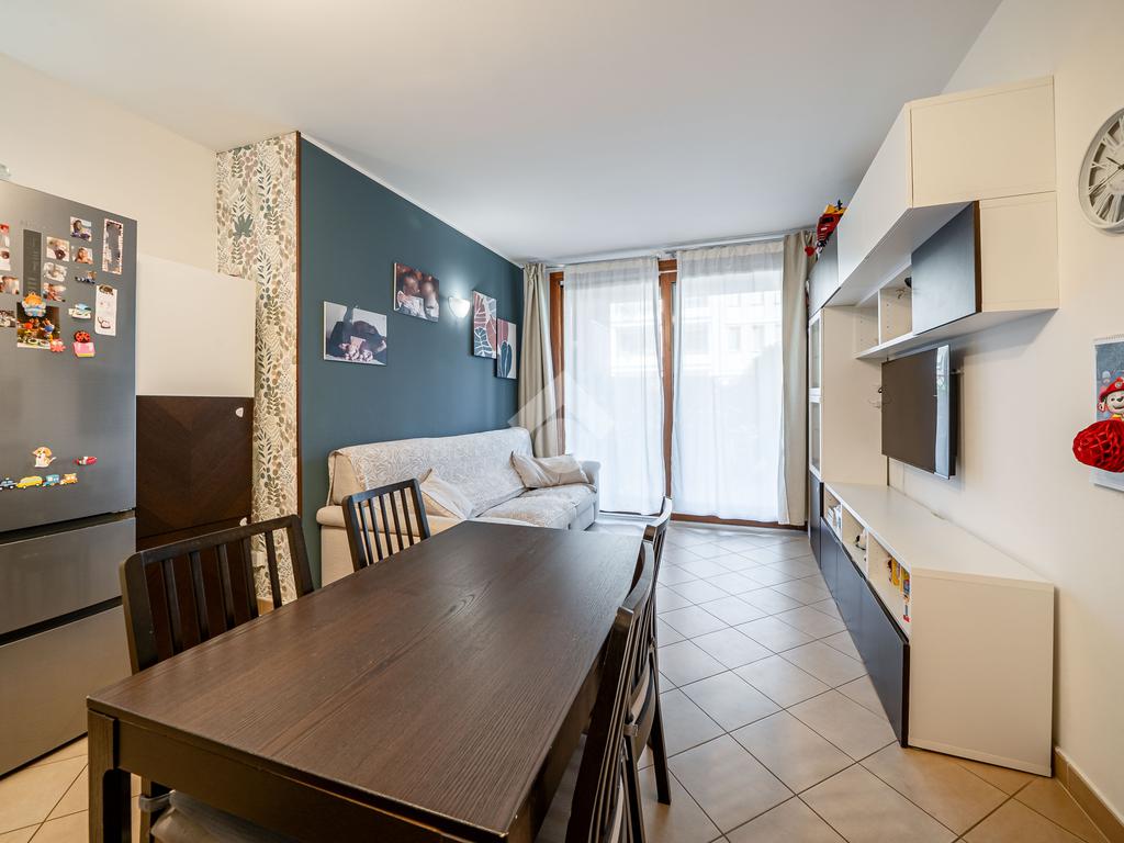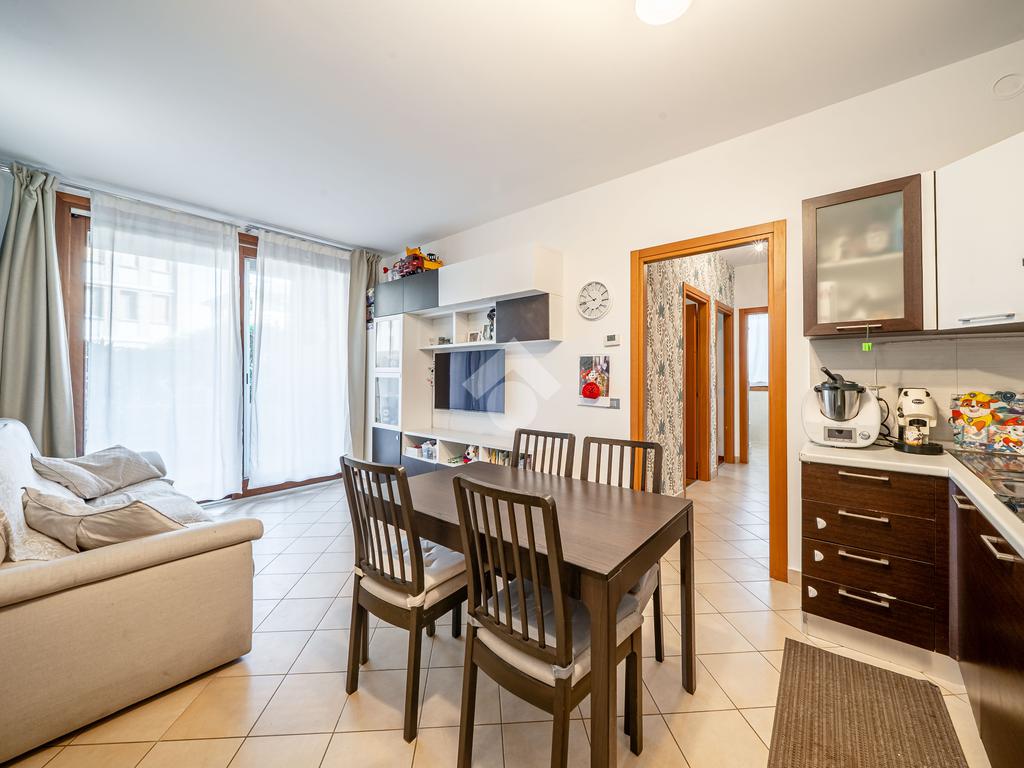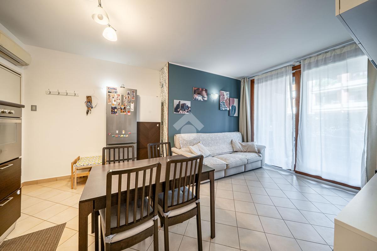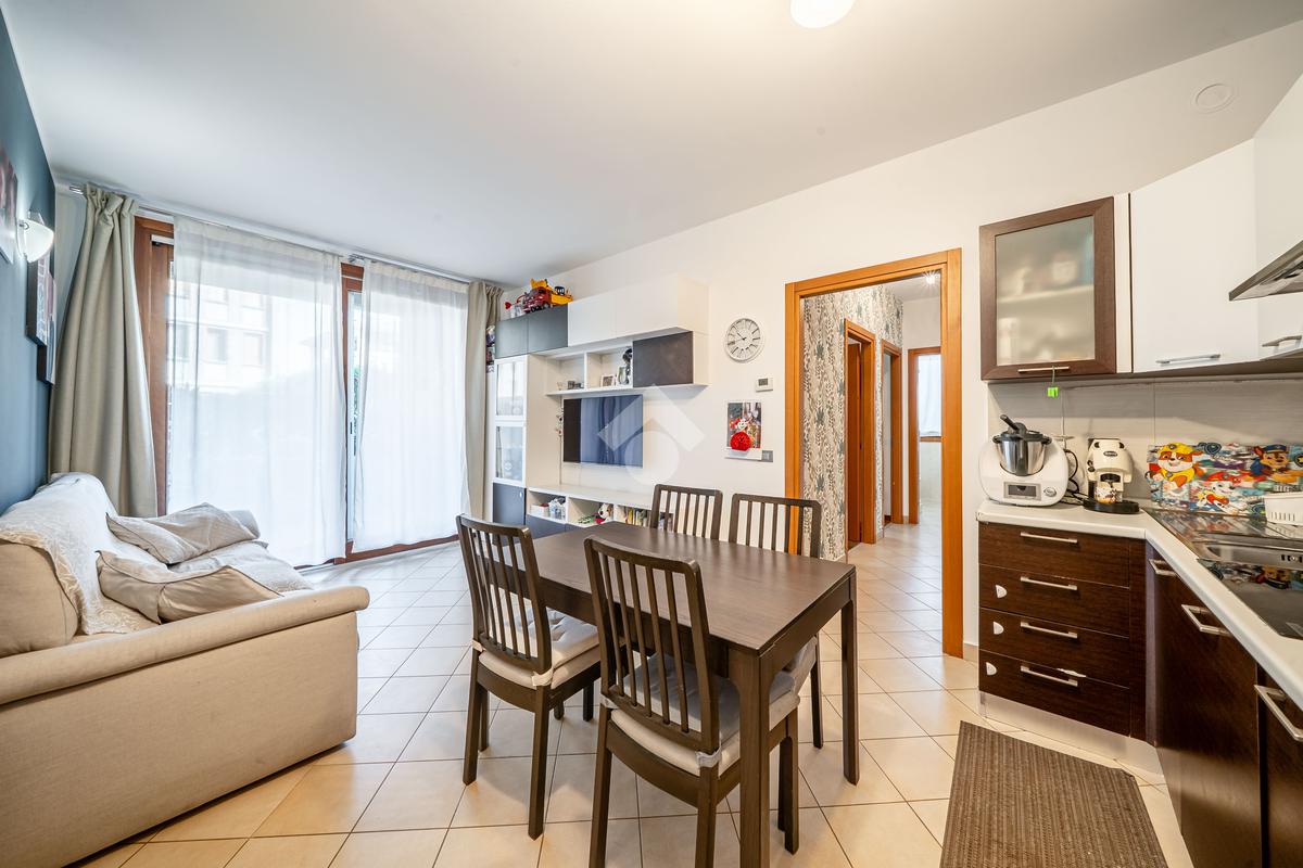 Luminoso appartamento di 77 mq, posto al piano terra di un edificio residenziale di recente costruzione.
