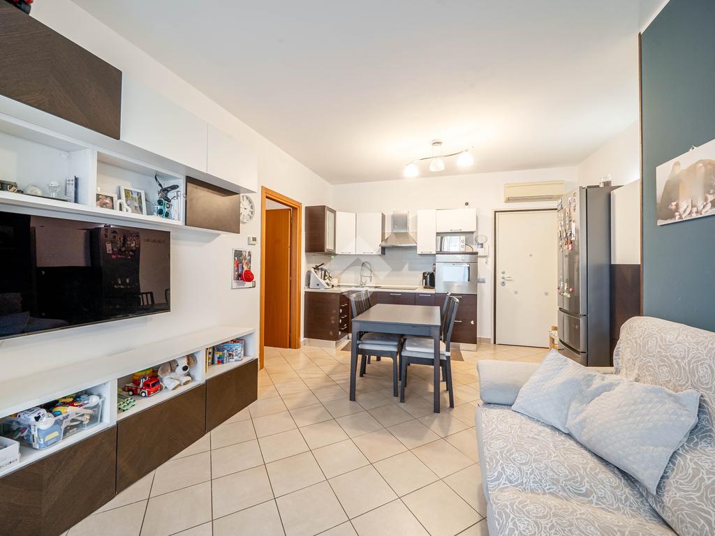 L'edificio costruito nel 2006, offre spazi funzionali e moderni. Entrando, si accede a un luminoso soggiorno con angolo cottura e un'ampia vetrata con porta finestra, che si affaccia su una loggia, ideale per momenti di relax all'aperto.