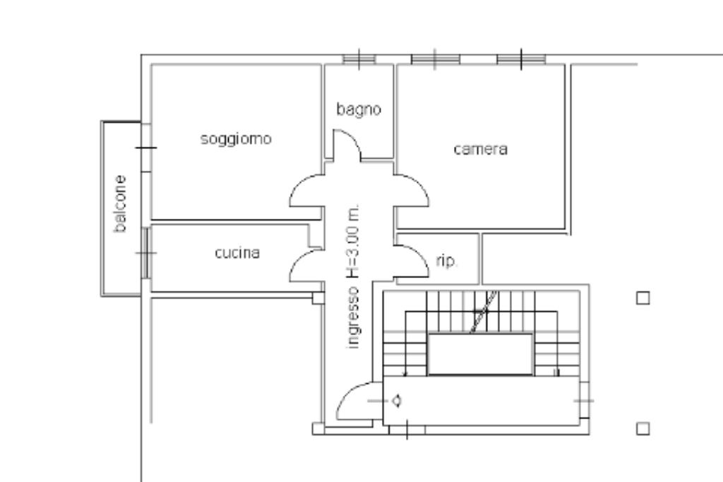 L' immobile è composto da: ingresso, cucina, soggiorno con balcone, camera da letto matrimoniale, bagno con finestra e ripostiglio.
