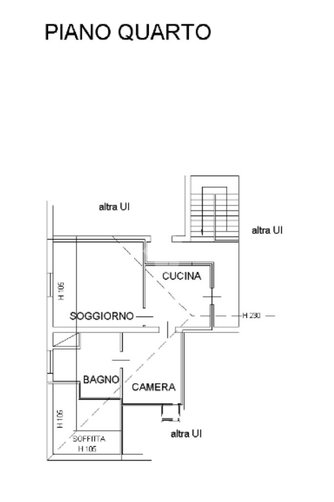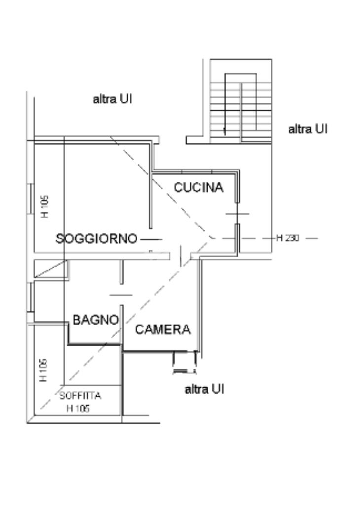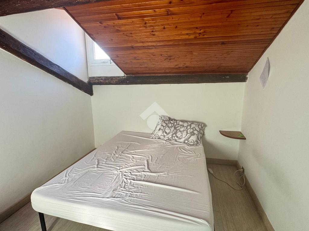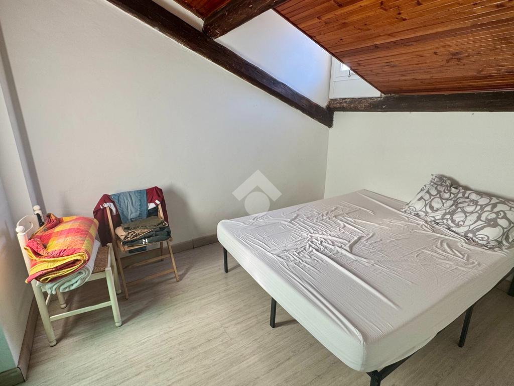 L' immobile è composto da cucina abitabile, soggiorno, camera da letto mansardata con travi a vista in legno, bagno con finestra.